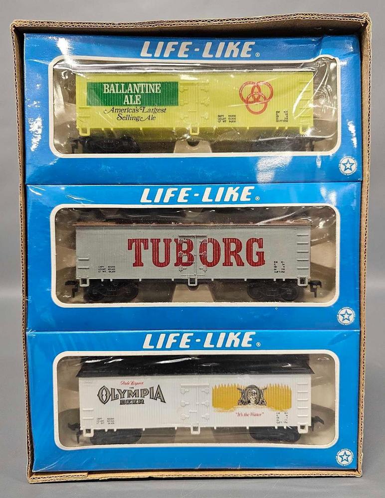 DescriptionFactory sealed Life-Like HO scale Chug-A-Lug p pak of woodside refrigerator cars, stock number 8552. The cars are shrink wrapped together as a brick with a corrugated cardboard sleeve around the outside. The sleeve is in excellent condition and the cars are all near mint to mint in very good to excellent original boxes as seen in the photos. The cars include Ballantine Ale, Tuborg, Olympia, Michelob, Miller High Life and Pabst Blue Ribbon.