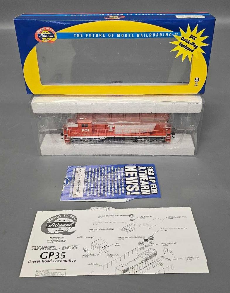 Athearn RTR HO Toledo Peoria and Western GP-35 diesel locomotive in original box, stock number 96053, road number 901, unit is unrun and C9-10 in an excellent original box. DCC quick plug equipped.