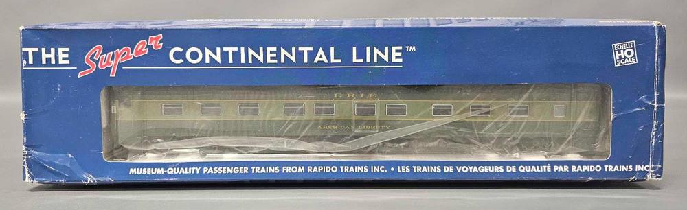 Rapido HO Erie American Liberty 6-4-6 sleeper car in original box, stock number 113036, C8-9 in a fair original box as seen in the photos.