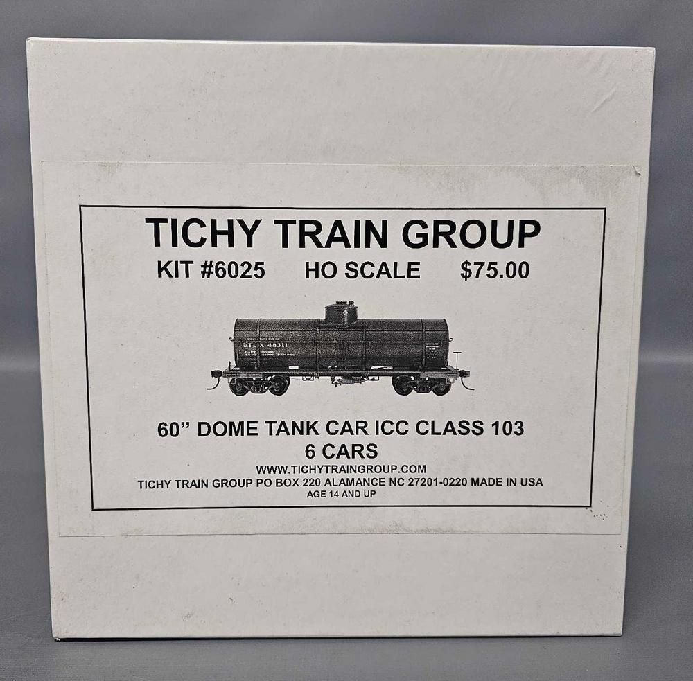 Tichy Train Group HO scale bulk pack dome tank cars ICC Class, stock number 6025, includes six kits that are all new in original box. The main box has never been opened, I presume the kits are all sealed and mint / complete.