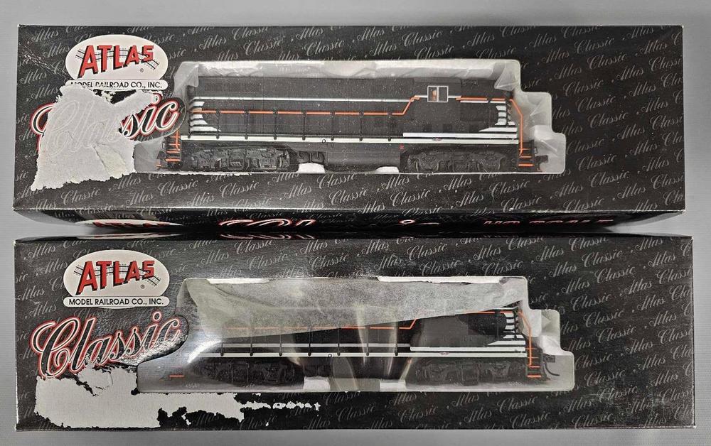 DescriptionTwo Atlas HO Chicago and Eastern Illinois EMD GP-7 diesel locomotives in original boxes, stock number 8449. Both units are unrun and C9 with detail parts in damaged original boxes as seen in the photos. Both are unnumbered from the factory.
