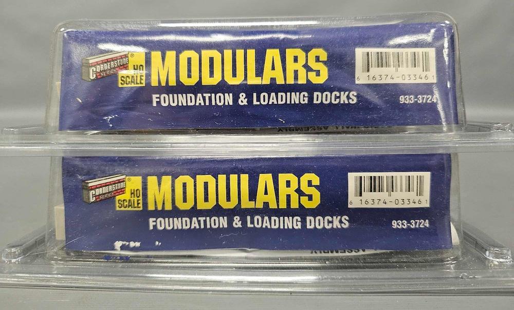 Two Walthers Cornerstone Modulars kits in original boxes to include 933-3724 foundation and loading docks as seen in the photos.
