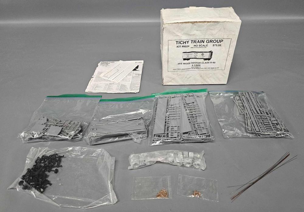 DescriptionTichy Train Group HO scale bulk pack Pacific Fruit Express wood reefer cars Class R-40, stock number 6024. Includes parts for six cars. The original box was damaged badly with water. The parts are almost all in ziplock bags. Sold as-is as seen in the photos with no returns.