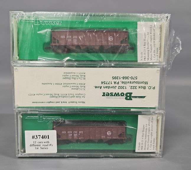 Bowser N Scale Pennsylvania Hopper 12 Car Set, stock number 37401. The set includes twelve different road number cars that are C10 in a sealed group with shrink wrap.