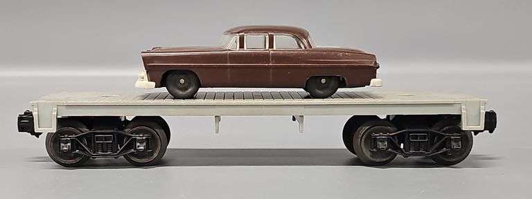 LOT 159 - Lionel Postwar O 6401 Flat Car with Brown Auto