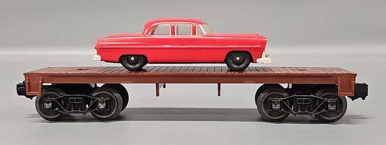 LOT 160 - Lionel Postwar O 6404 Flat Car with Red Auto