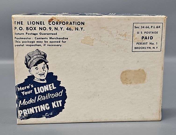 Unopened Postwar Lionel Model Railroad Printing Kit, comes in a very good original box with minor stains.