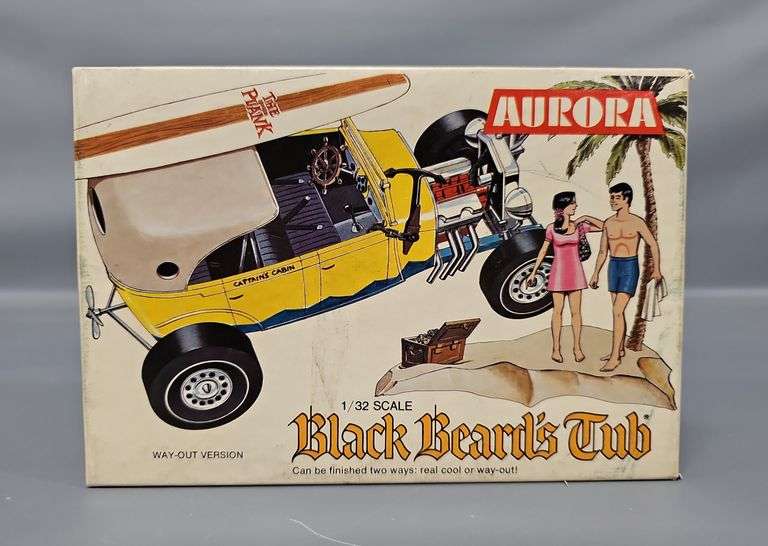 DescriptionAurora Blackbeard's Tub Way-Out Version 1/32 Scale Model Kit, stock number 594-150. This kit may or may not be complete as most of the parts are loose from the sprues. Comes with a nice original instruction sheet and mint unused decal sheet in a very good original box.