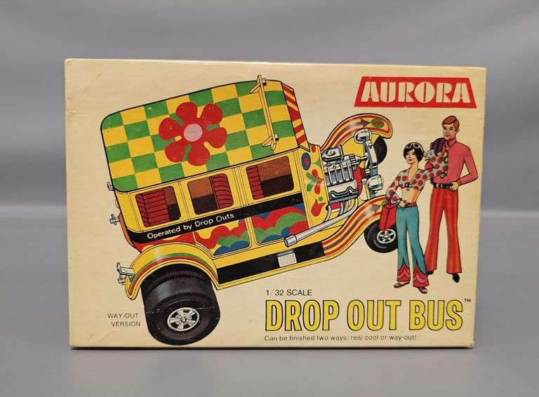 DescriptionAurora Drop Out Bus 1/32 Scale Model Kit, stock number 591-150. This kit may or may not be complete as most of the parts are loose from the sprues but there is no instruction sheet but it does have a mint unused decal sheet in a high grade original box.