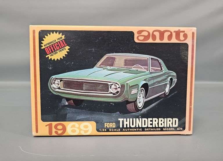 DescriptionAMT 1969 Ford Thunderbird 1/25 Scale Model Kit, stock number Y901-200. Kit appears to be complete with a some pieces loose from the sprues and no work started. Comes with a crisp original instruction sheet and mint unused decal sheet in an excellent original box.