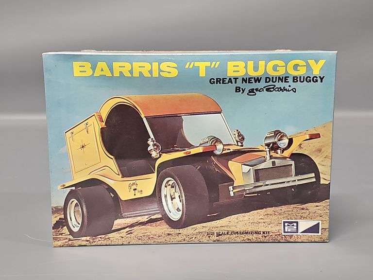 Factory Sealed MPC George Barris "T" Buggy 1/25 Scale Model Kit, stock number 417-200. This kit is still perfectly sealed with some minor sunken areas of the lid and sides but with great graphics still.