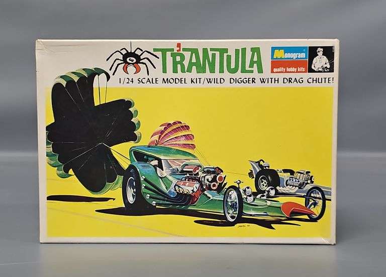 DescriptionMonogram Trantula Wild Fuel Drag Coupe 1/24 Scale Model Kit, stock number PC190-200. Kit appears to be complete with a few pieces loose from the sprues. The engine block has been glued together but there are no damaged parts. Comes with a crisp original instruction sheet and mint unused decal sheet in an excellent original box. This is a vintage original kit, not a reproduction.