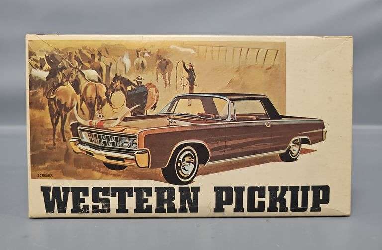 DescriptionAMT Western Pickup 1/25 Scale Model Kit, stock number T148-150. This kit may or may not be complete or as there are thirteen parts loose from the sprues. There has then no work started and there are no damaged parts. Comes with a crisp original instruction sheet and mint unused decal sheet in a good to very good original box.