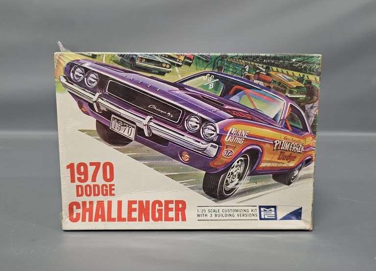 Factory Sealed MPC 1970 Dodge Challenger 1/25 Scale Model Kit, stock number 1470-200. Kit is still sealed with two small tears on two corners but the lid is very slightly sunken in but still has great graphics.