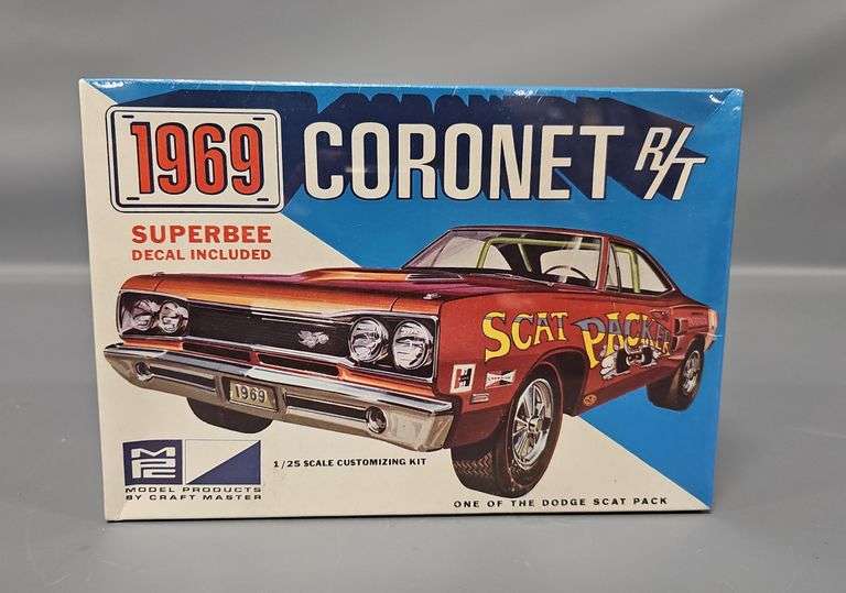 Factory Sealed MPC 1969 Coronet Superbee 1/25 Scale Model Kit, stock number 1769-200. This is a high grade example of a perfectly sealed vintage original kit, it doesn't get any better than this.