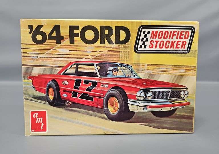 DescriptionMint Unbuilt AMT '64 Ford Modified Stocker 1/25 Scale Model Kit, stock number T193-225. This is an open box, sealed bag kit with all parts accounted for. Comes with a crisp original instruction sheet and mint unused decal sheet in an excellent original box.