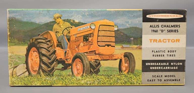DescriptionRare Strombecker Allis Chalmers 1960 "D" Series Tractor 1/25 Scale Plastic Model Kit, stock number D61-149. This kit is complete with some parts still sealed, comes with a crisp original instruction sheet in a very good original box. The tires are rubber and in great shape.