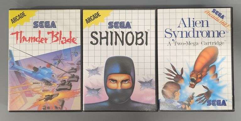 LOT 28 - Sega Alien Syndrome, Shinobi, Thunder Blade Game Cartridges CIB