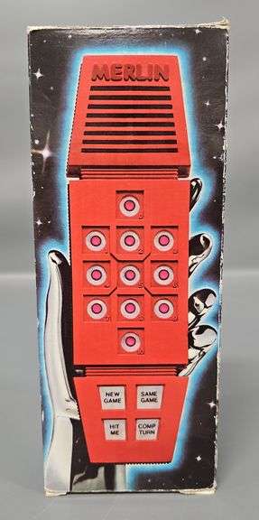 DescriptionVintage Parker Brothers Merlin The Electronic Wizard in Original Box, stock number 3200. Requires six AA batteries (not included). Includes original box and paperwork and has been tested and works perfectly.