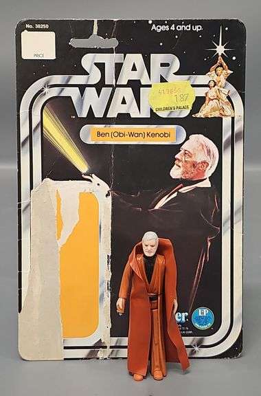 DescriptionKenner Star Wars Ben (Obi-Wan) Kenobi with 12-Back Card stock number 38250. The figure is in excellent condition but the tip of the light saber has been broken off. The card is missing the blister and a good portion of the paper from the front and has creases etc. as seen in the photos.