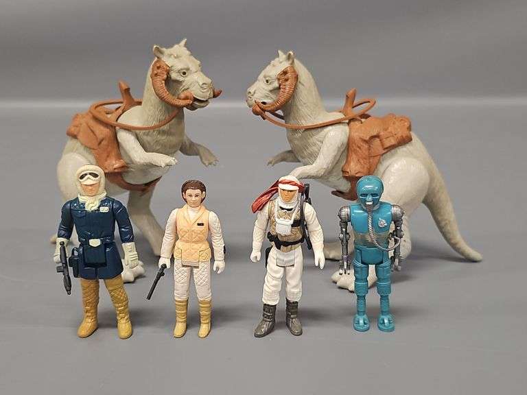 DescriptionKenner Star Wars Hoth Rebel Forces and Tauntauns to include Han Solo, Princess Leia, Luke Skywalker and 2-1B. Luke and Leia have correct weapons but Han has a large black blaster instead of a small black one. The Tuntauns and figures are all in excellent condition.