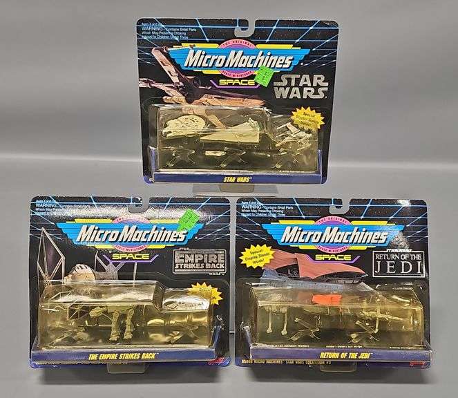 DescriptionThree Galoob Micro Machines Star Wars Miniature Sets on Blister Cards to include Star Wars A New Hope, Empire Strikes Back and Return of the Jedi. All three are in excellent to near mint condition.