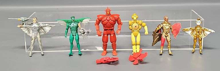 DescriptionGroup of Vintage Kenner Silver Hawks Action Figures with Some Accessories, one figure is missing it's right arm, the rest appear to be complete and in very good to excellent condition.